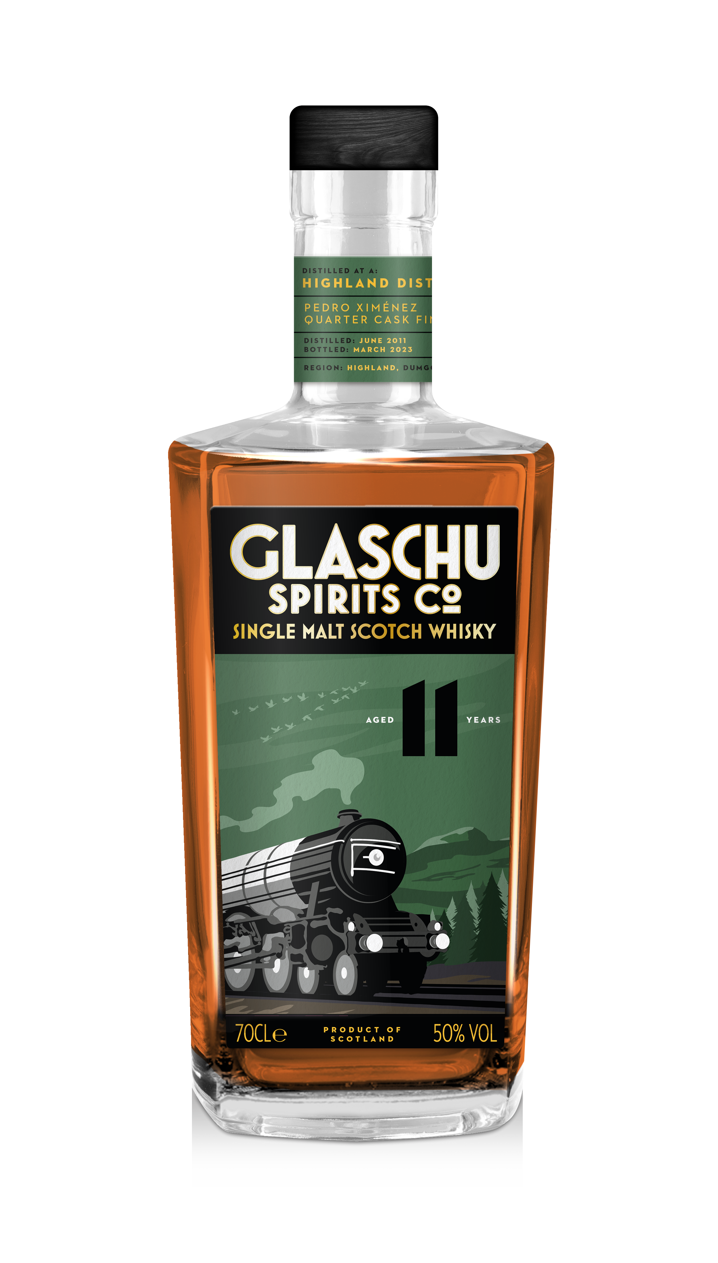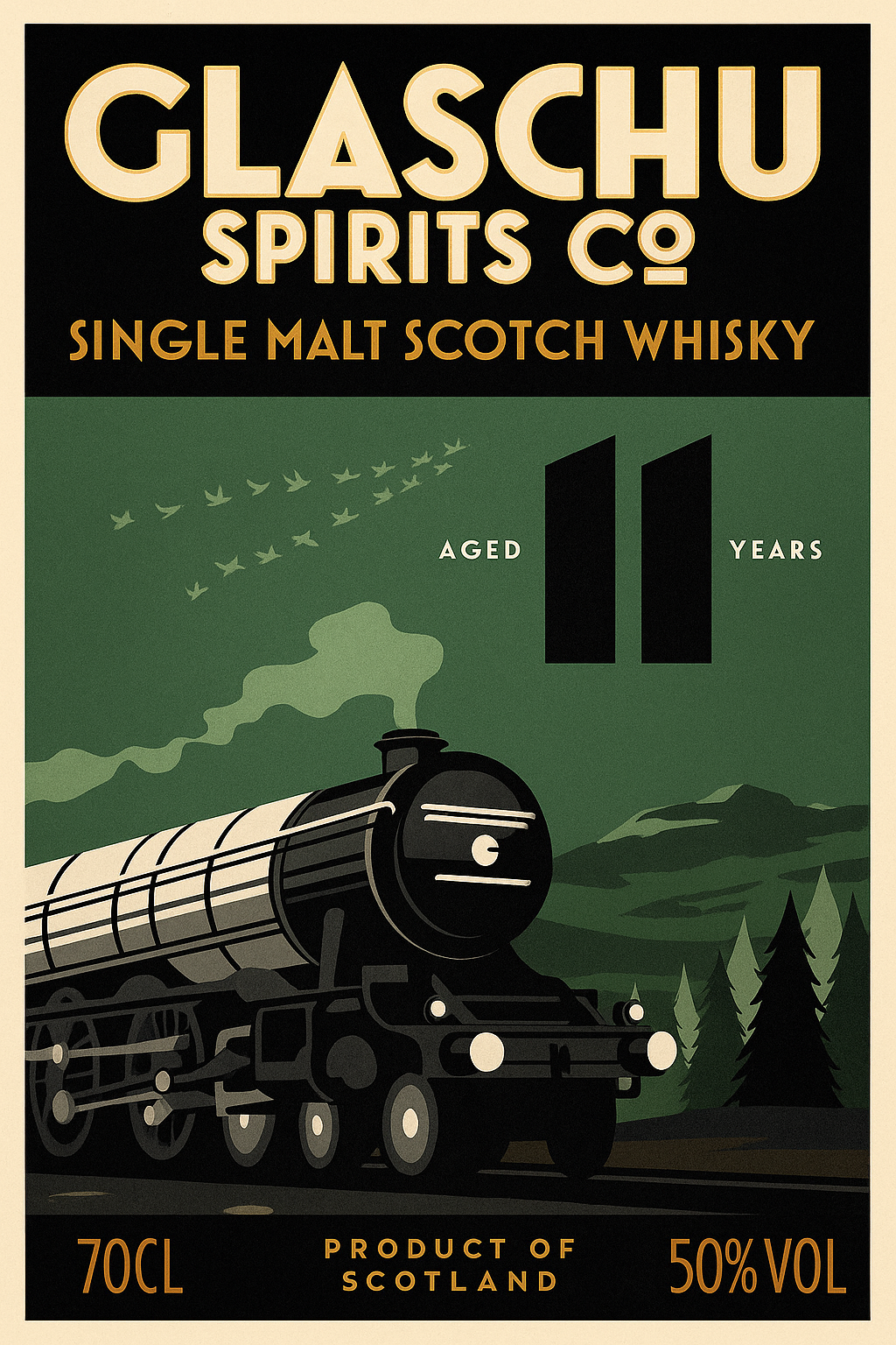 This release shows the Flying Scotsman thundering down the railway line outside Glengoyne distillery. The railway line is now gone but in it's place lies the west highland way, a famous walk that goes through the Scottish highlands.